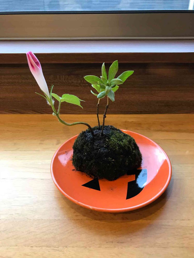 素敵~✨ビックリした~✨苔玉に朝顔✨✨✨💚素敵過ぎます😊