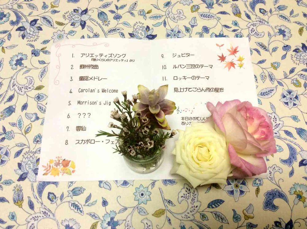 ご本人様のご了承を得て、昨日のカフェコンサートのセットリスト🤳しまーす😋