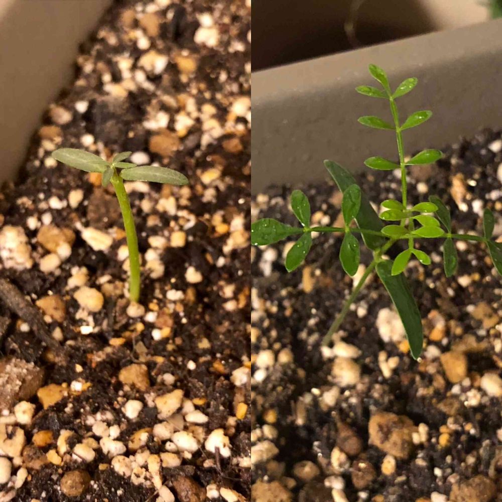 それぞれ8月24日と9月1日に播いた、パキポディウム・グラキリスとオペルクリカリア・デカリーの遅播きフレンズです🌱
