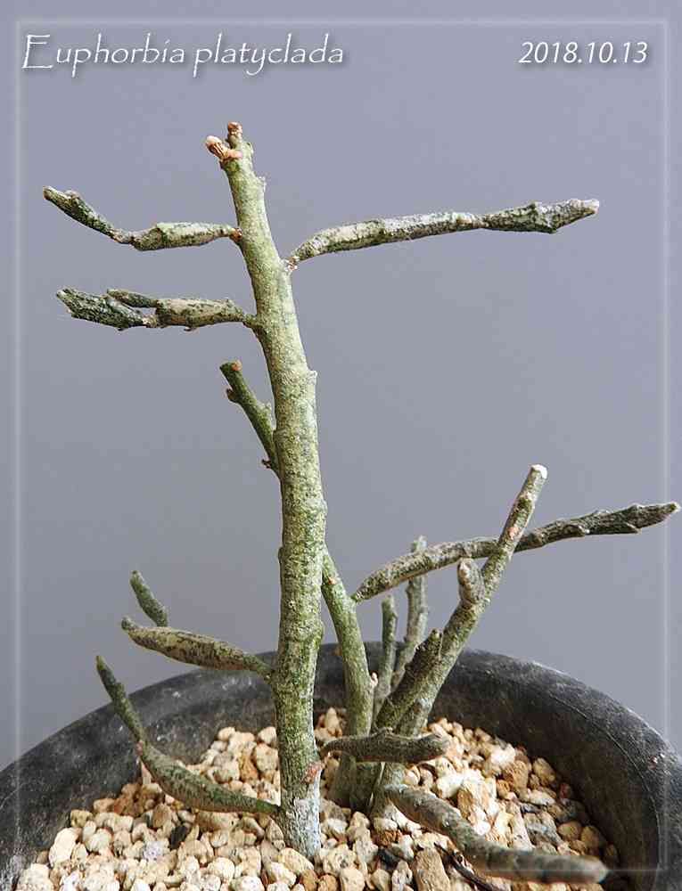 ユーフォルビア、プラチクラダ。普通見かけるのとはちょっとタイプが違うようで、小枝っぽくて緑。緑なので植物に見える……ゾンビプランツの名前に反しているよ、プラチクラダ2号!