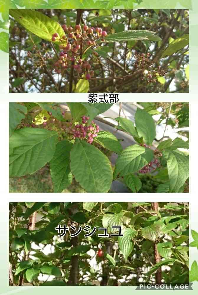 コムラサキと紫式部は全然違う実のつき方、葉の茂り方ですねぇ〜!!