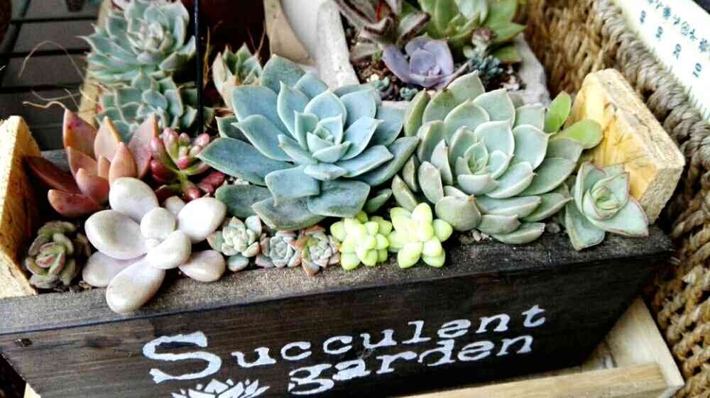 木箱の焦げ茶と、カラフル多肉がチョー可愛くてニヤニヤ~💕