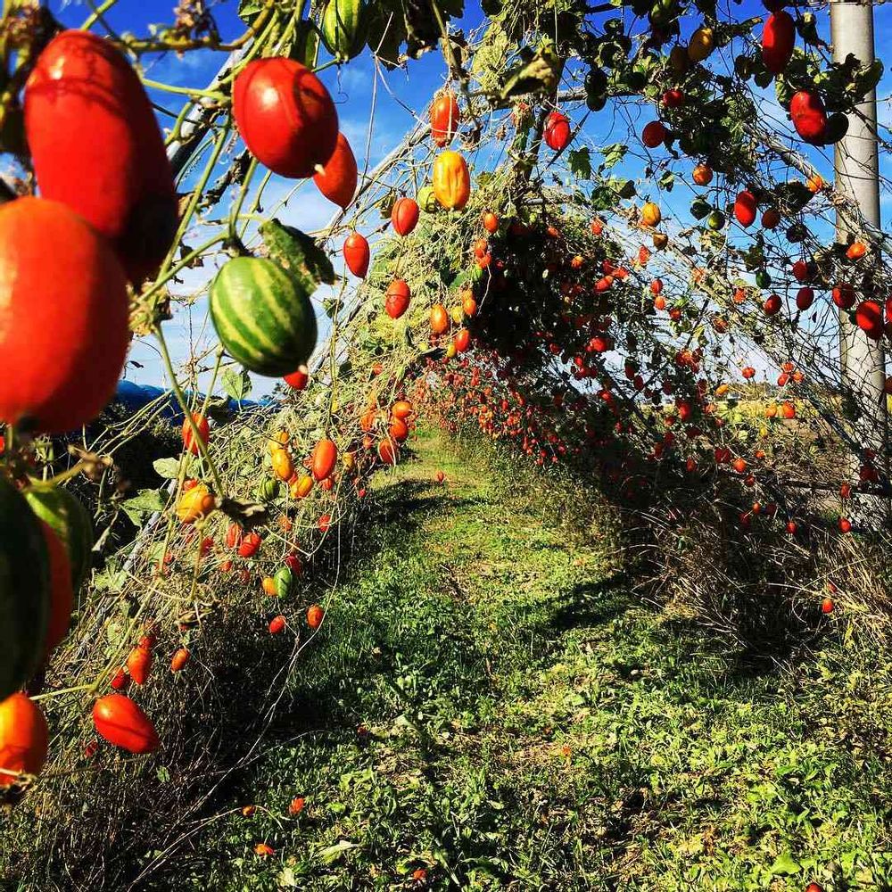からすうりのアーチ。いつもすぐそばにあるのですが、色づいてくると、ふと数秒息をのむ美しさです。