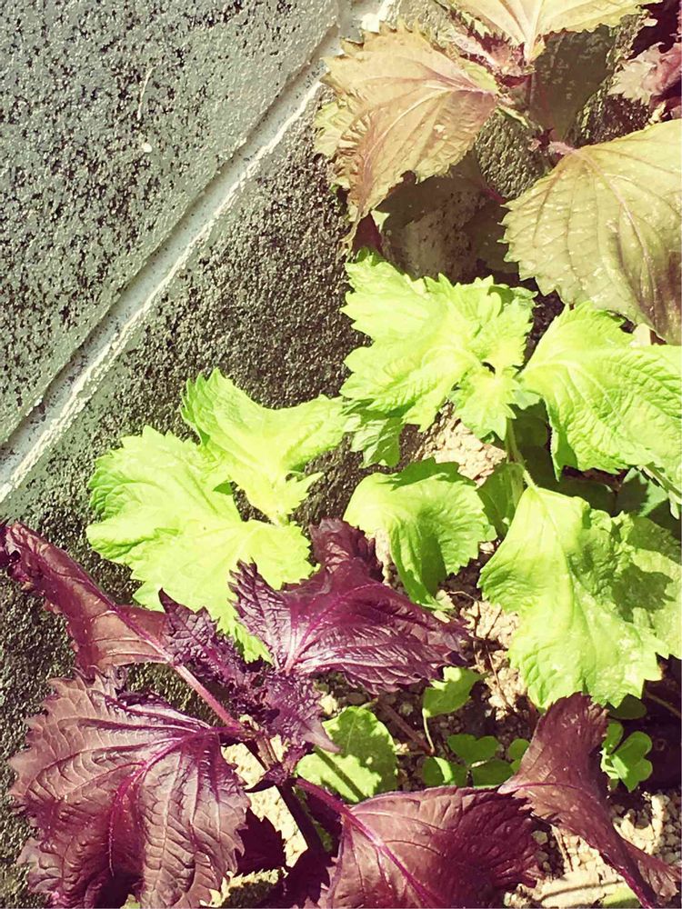 1つずつ1株の青シソ、紫シソが種を飛ばして…いくつもの株を出してくれてる(*´∀`)