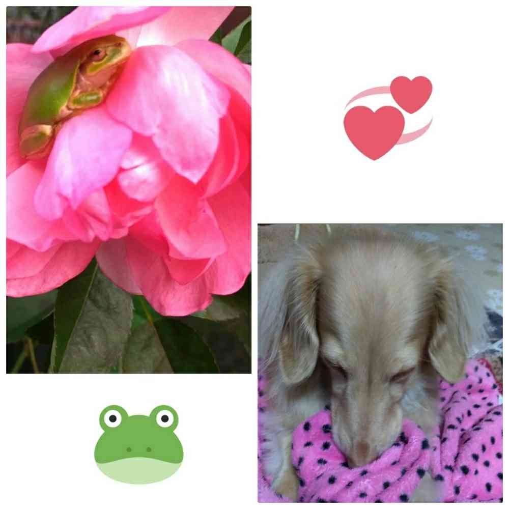 今朝はバラの花びらの間でカエル君ヵ🐸寒さをしのいでいました💕