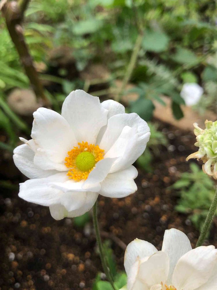 その足元に、白いシュウメイギクを植えてみましたよ✨✨✨