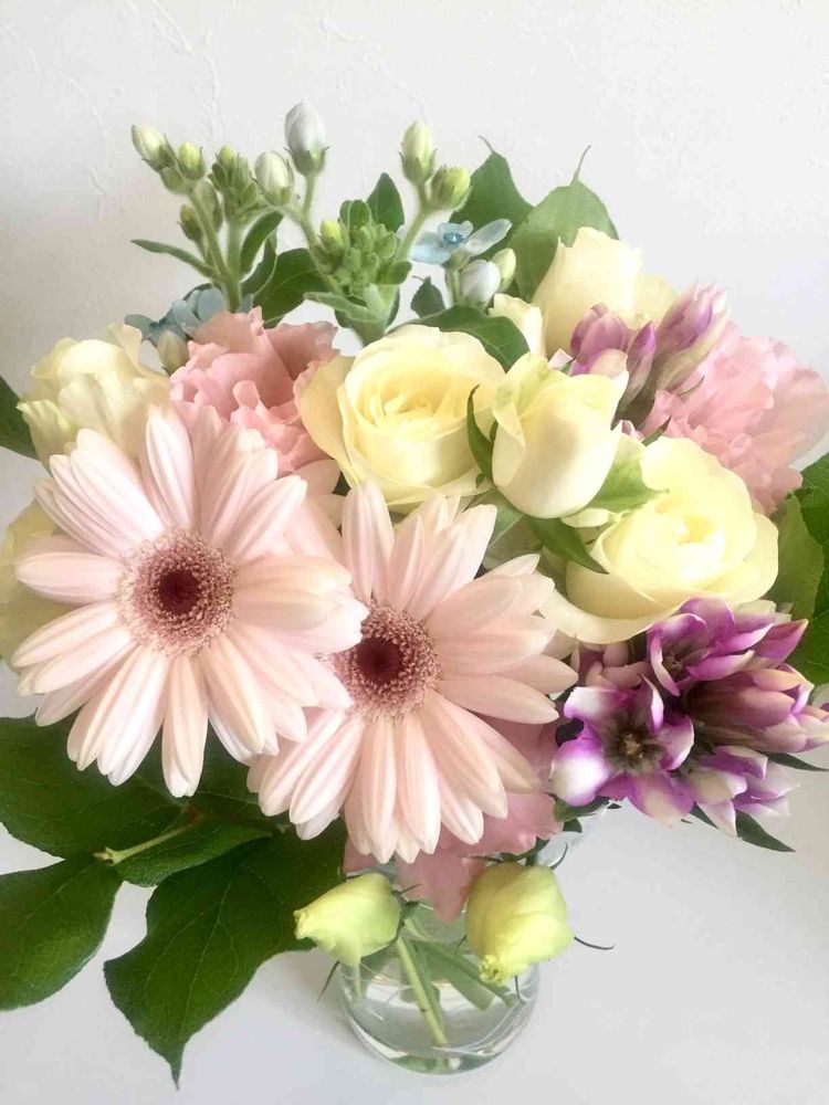 いつもは投げ入れだけど、久しぶりにブーケにしました。