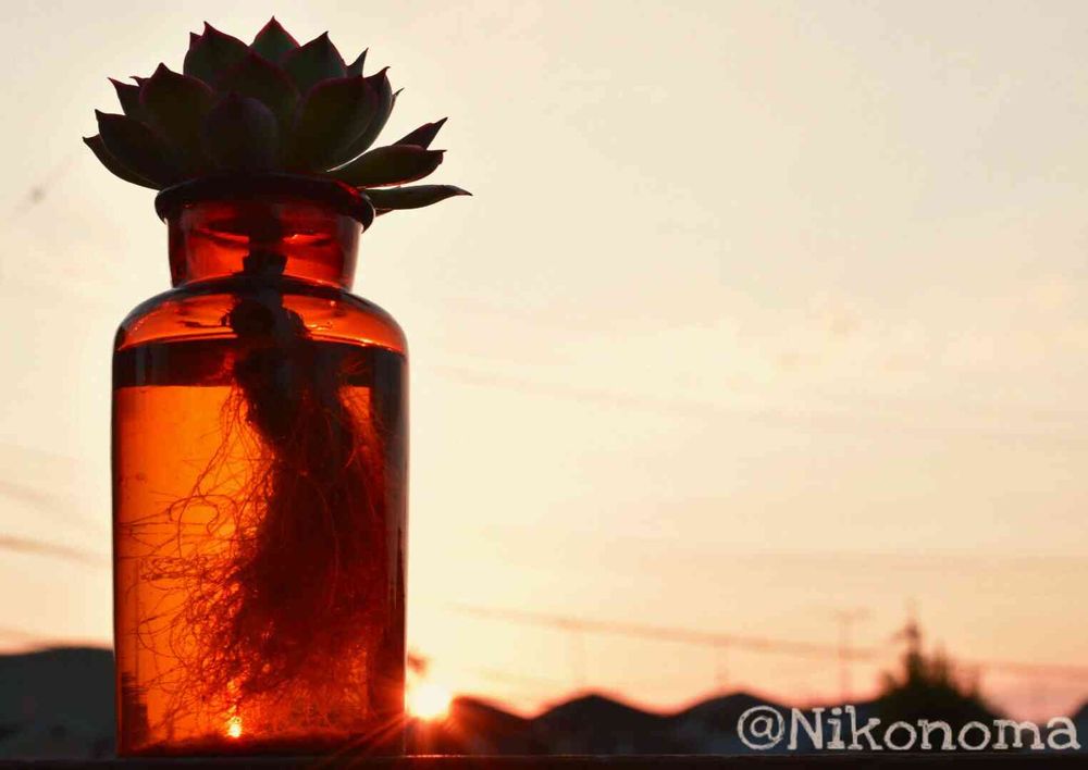 夕陽を水耕栽培にも拝借(♡ˊ艸ˋ)♬*