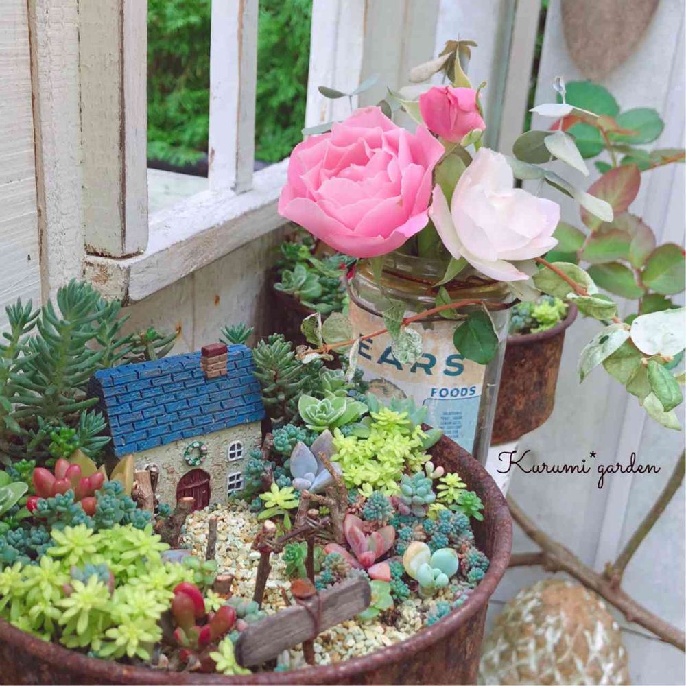 くるみガーデン くるみ ⃰ さんの小さな庭,多肉植物の寄植え,箱庭の投稿画像
