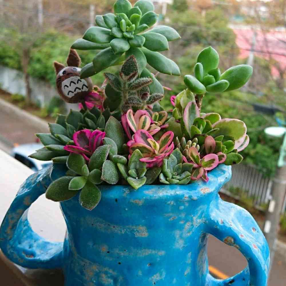 25歳の長女が 小学校の頃に 作ったマグカップに 新たに寄せ植え♥️可愛い(*≧з≦)💕