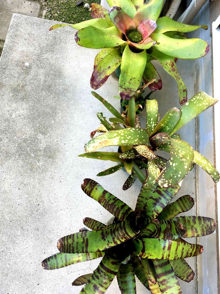 並べたブロメリアたち。株が大きくなり過ぎてヤバい。しかし、株分けしたら鉢が増え過ぎるし、悩み中。もう、寒いので、そろそろ部屋に入れなきゃいけないけど、こんなに大きくなると置き場所にも悩む狭い部屋(>人<)