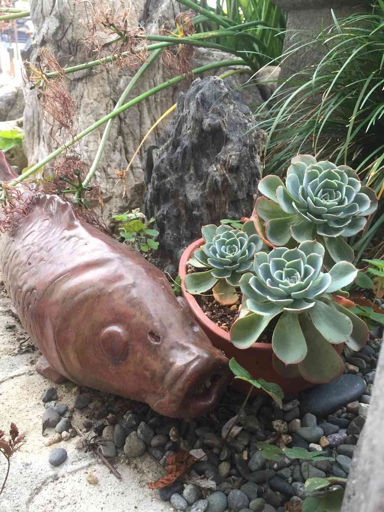 片隅に、カエル🐸やら鯉🐟やら亀🐢やら大黒様やら、瓦の恵比寿さまやら、訳の分からん物が鎮座してる、庭とは言えない庭です。