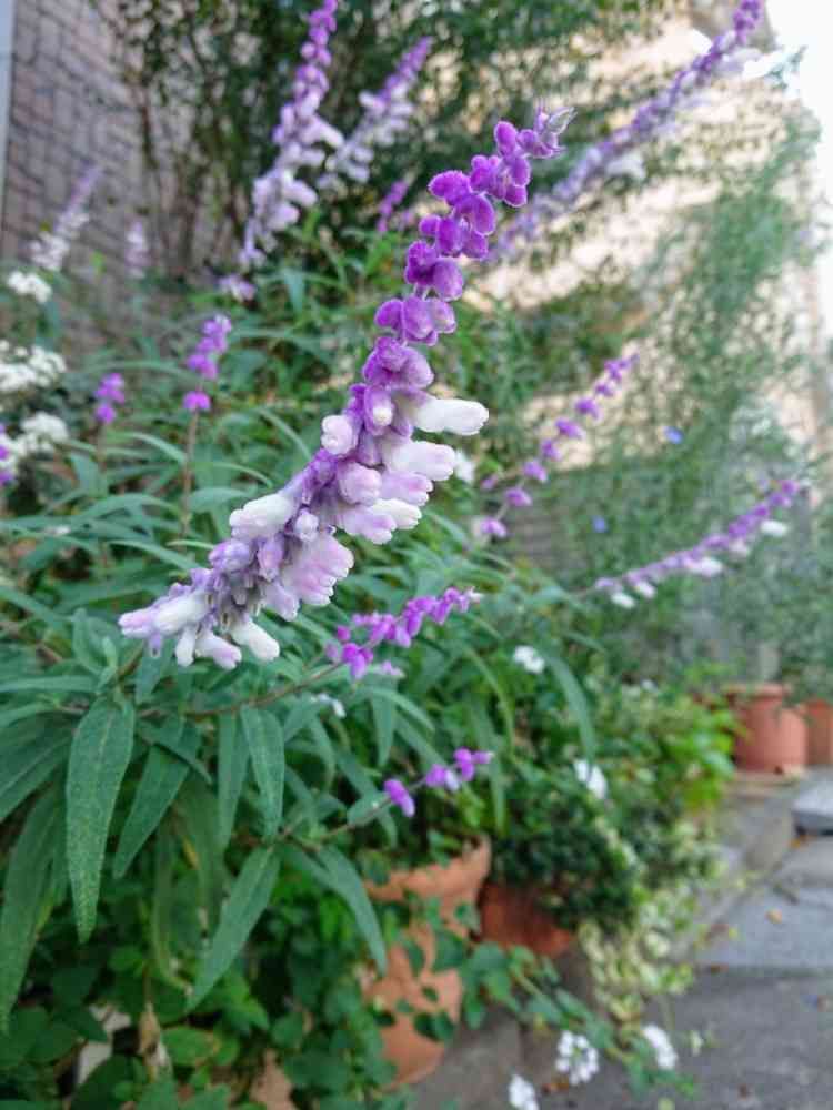 紫の花ばかりだと思っていたら、これは白い花🎵