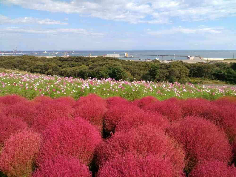 コキアもコスモスも広がる海も綺麗ですね〜。