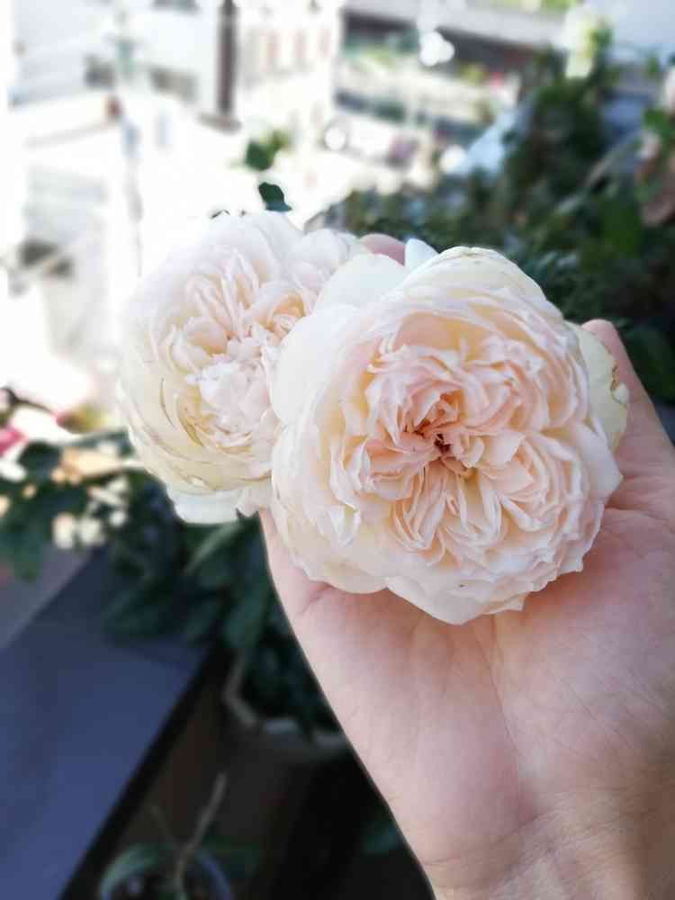 イングリッシュローズの様にビローンと伸びて風にあおられて花が痛みます