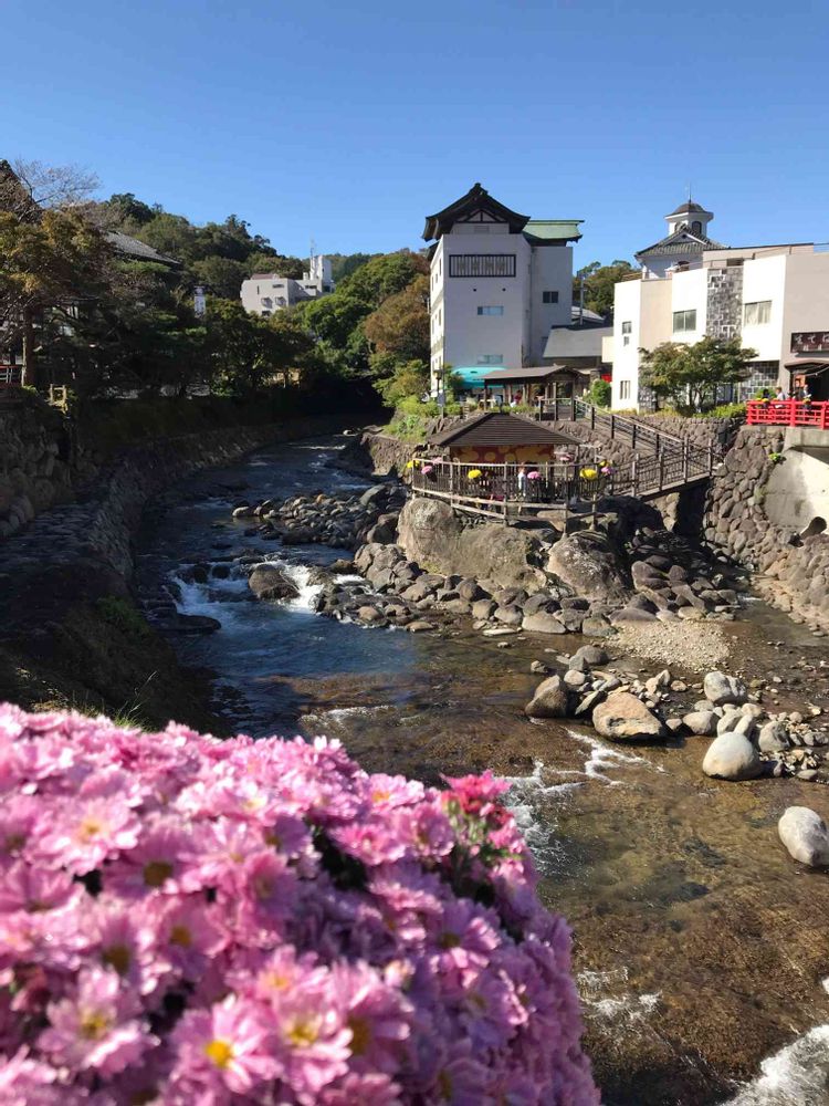 伊豆 修善寺の菊まつりと川の中にある独鈷の湯