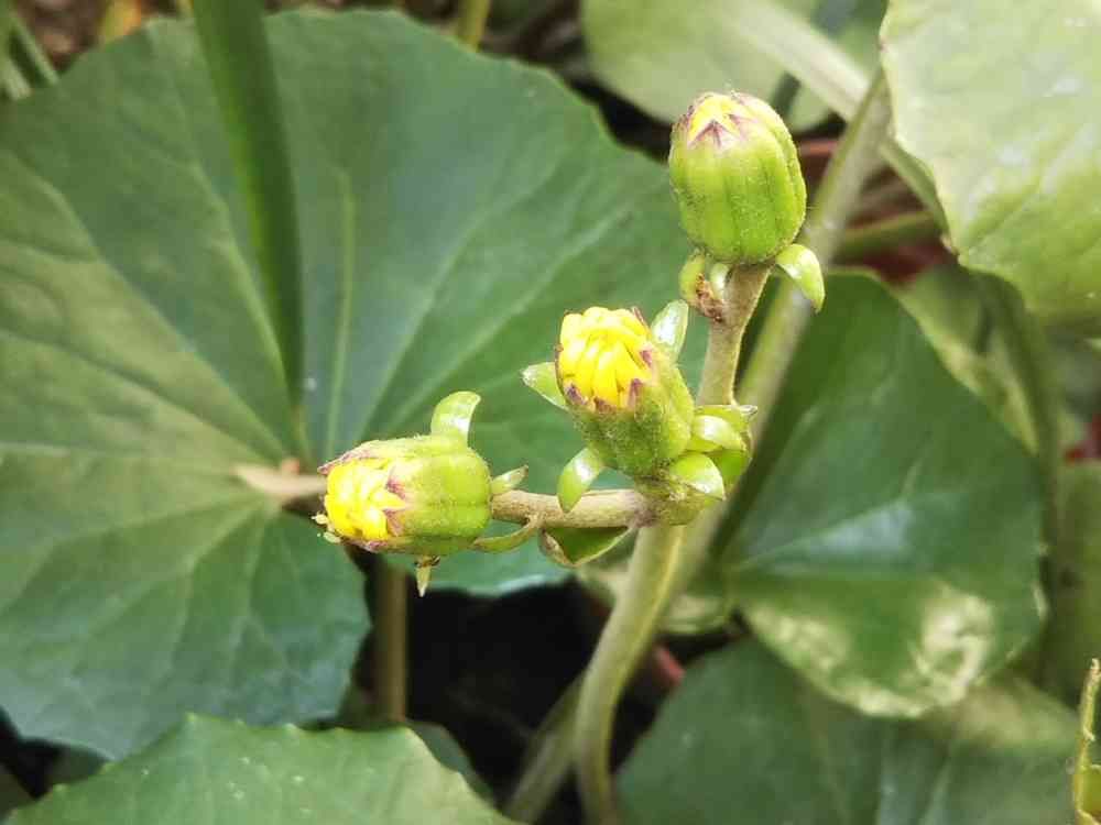 22日の花はツワブキということで、我が家の蕾をば。花の色が透けてきてる(^^)