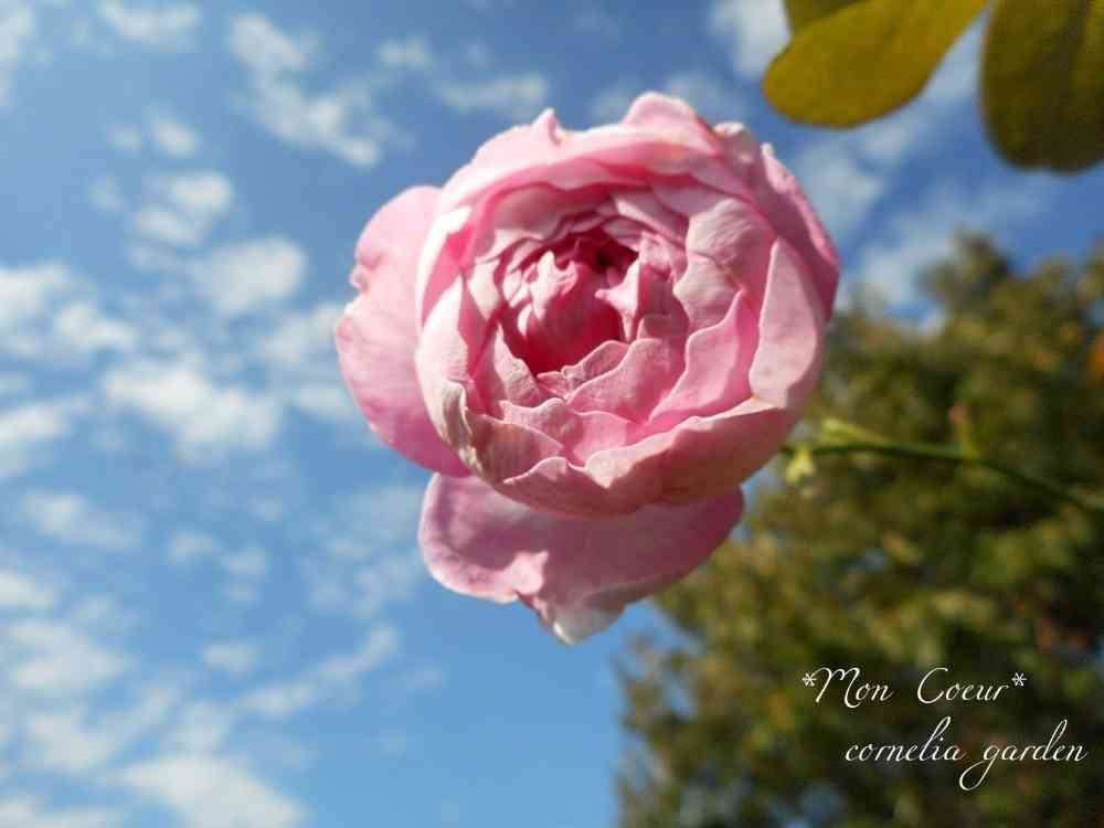 空を見上げたら、モンクゥ-ルが1輪咲いてくれてました♡・*:..。♡*゚¨゚゚・
