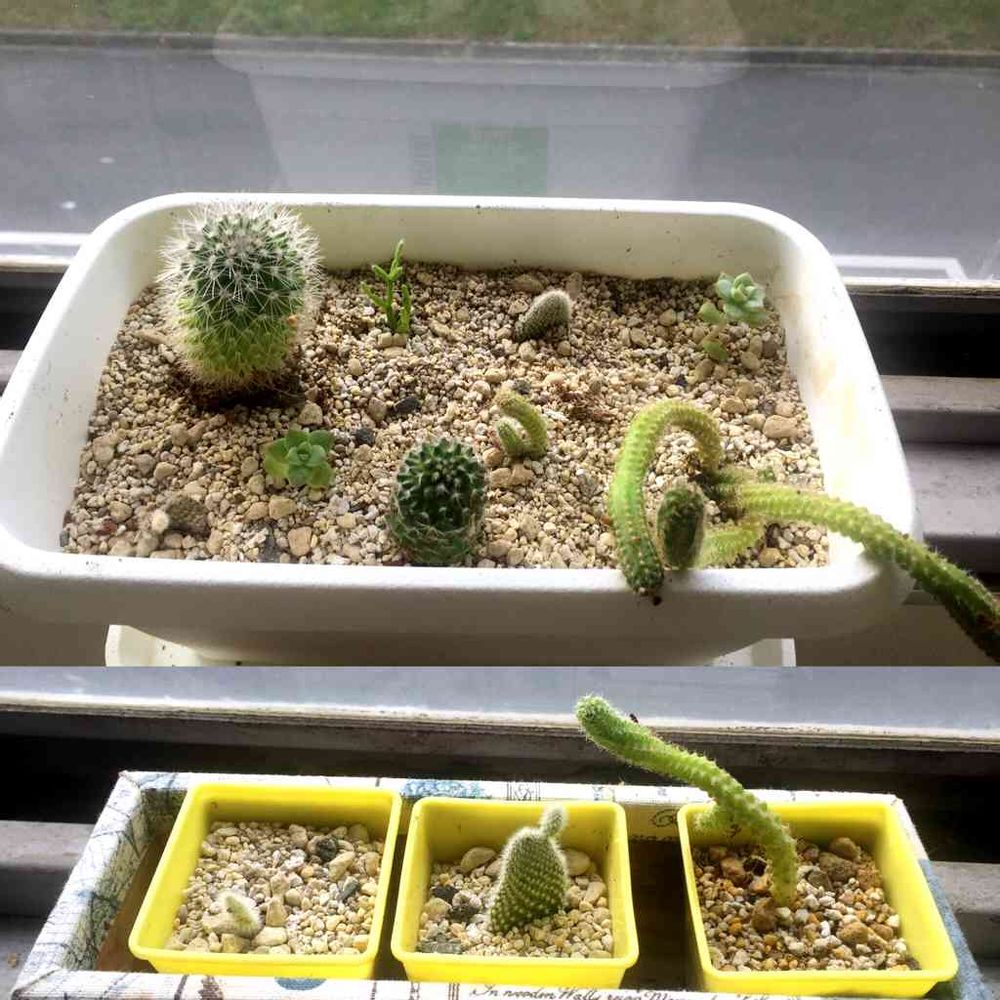 ウチワサボテンちゃんがウサギから丸坊主になったので、他の子達も植え替えてみました。