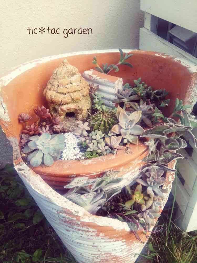 鉢減らしと夏にスッカスカになってた鉢の寄せ直しに割れ鉢に寄せ植えしました(*´ェ`*)