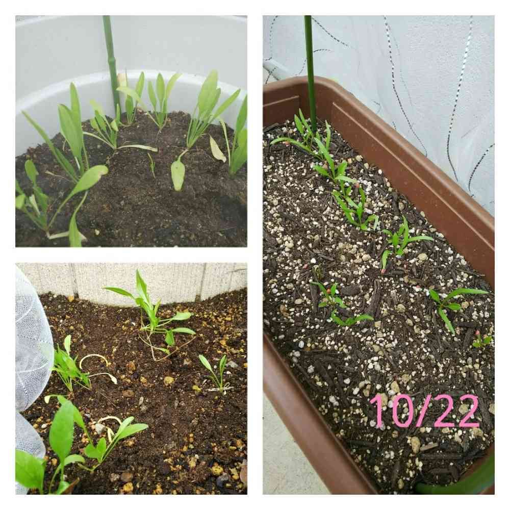 左2枚が9/13、右が10/03に蒔いたものです。