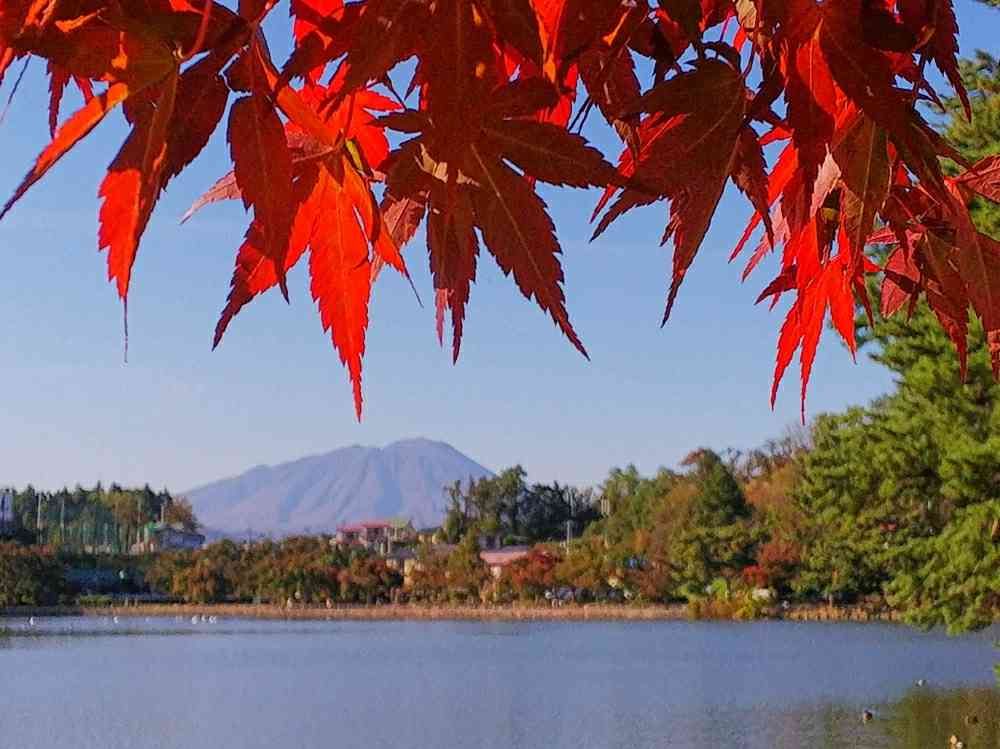 手前のモミジが鮮やかで綺麗です。