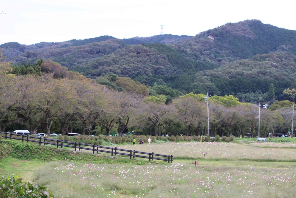 手前はコスモス畑🌸
