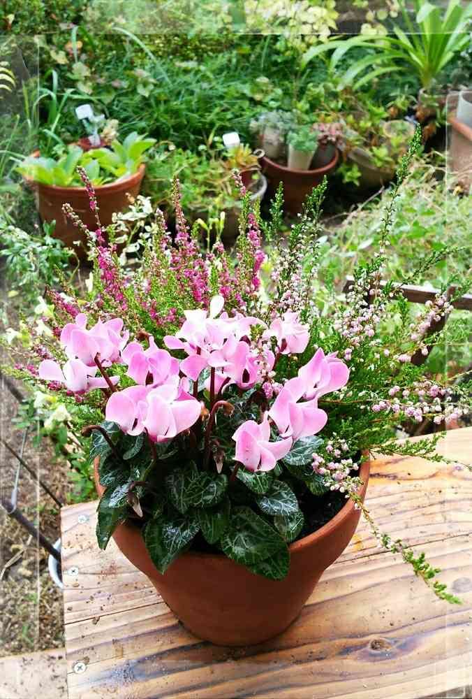カルーナとシクラメンの寄せ植え