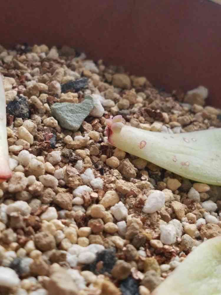 その日から葉挿しっ子として土の上にずっと寝かされてた子が2ヶ月半たってやっと芽を出してくれましたバンザーイ\(°∀° )/