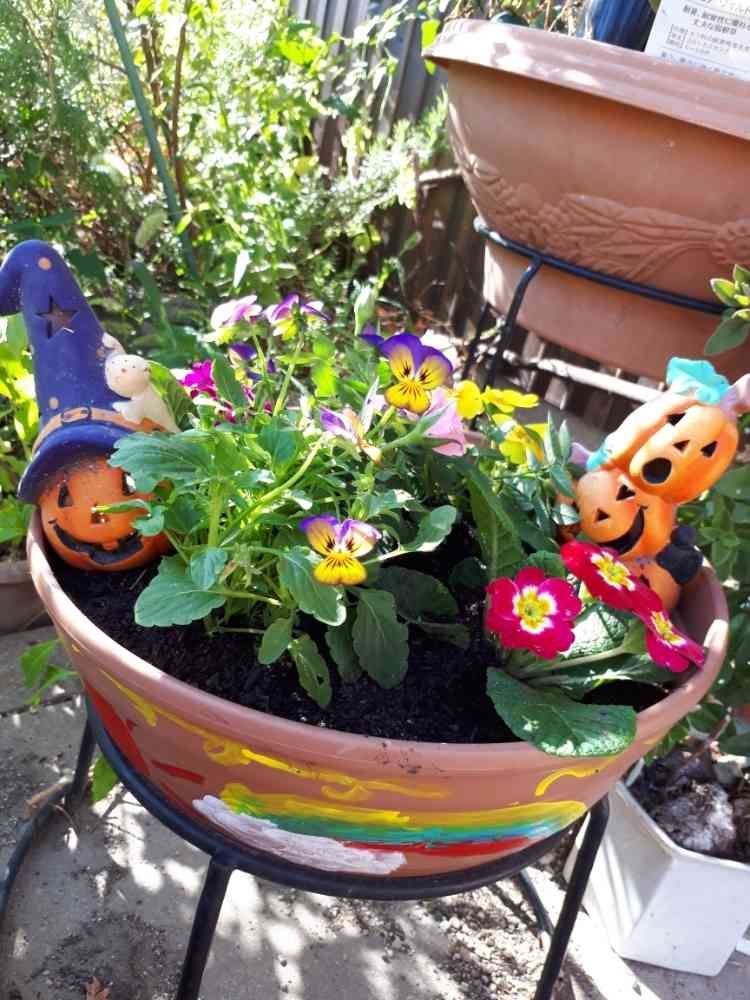 うえきばちに 水性アクリル絵の具で絵を描いてみた…でも初めてで難しかった…もうハロウィンだからハロウィン🎃の飾り〰🍀可愛い❤