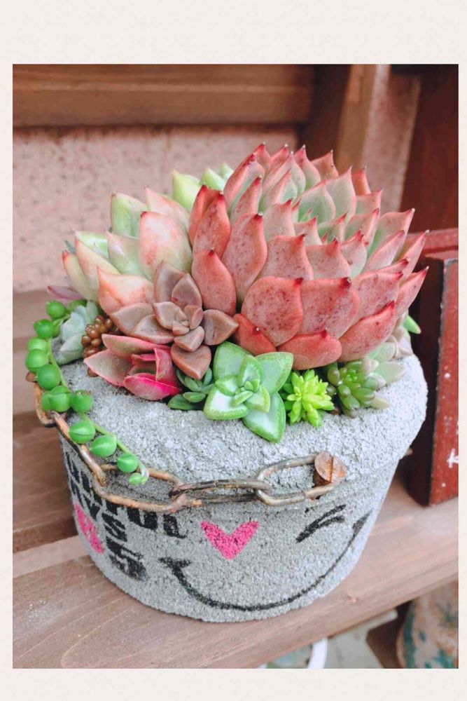 ロハスでGETした、ikuraさんのコンクリ鉢に寄せ植えしました〜( ˶ˆ꒳ˆ˵ )