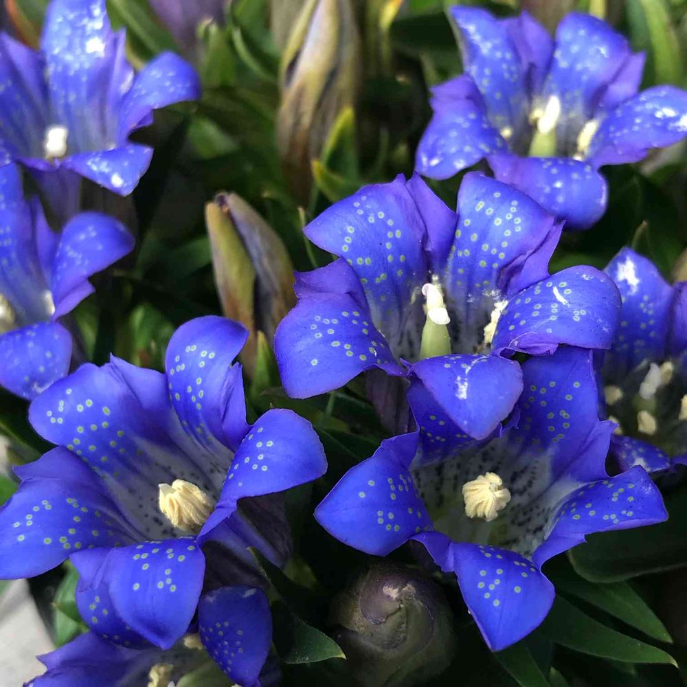 背が低いタイプのリンドウで、鉢の上にぎっしりと咲いてます