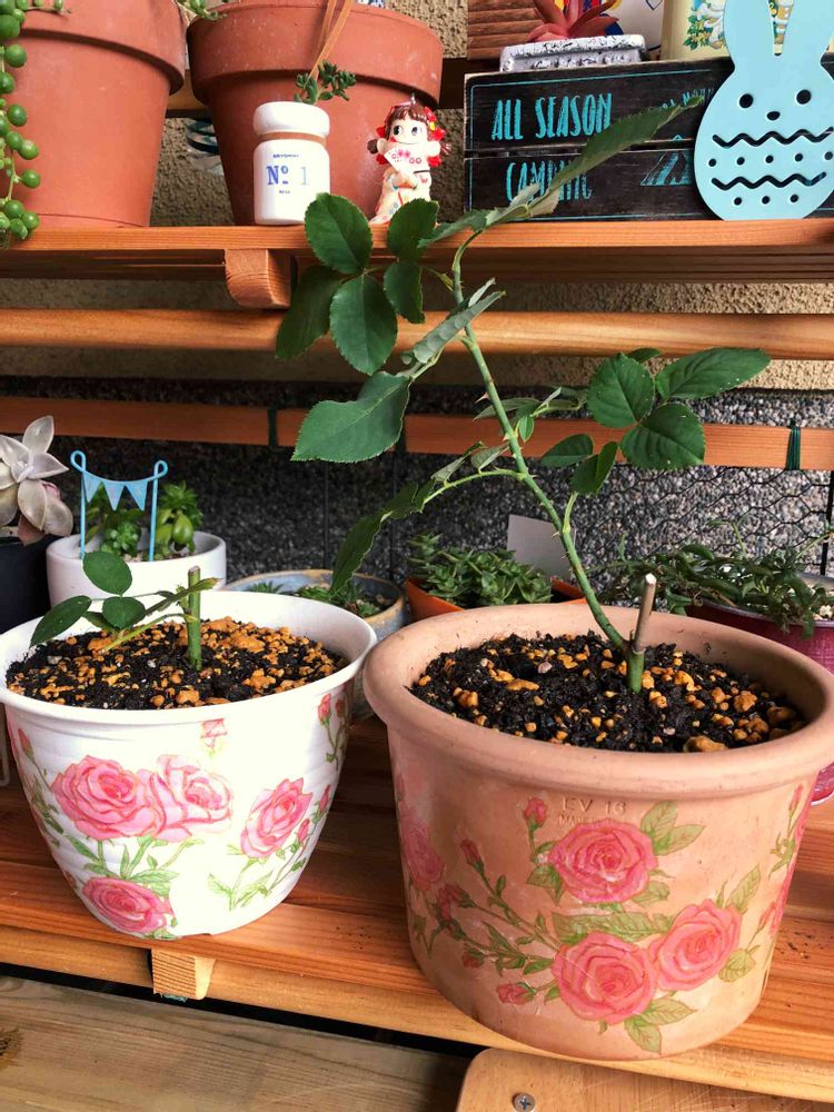 ありがとう〜❤️挿木10本のうち4本成功しました。本物の🌹より鉢がゴージャスかも😊