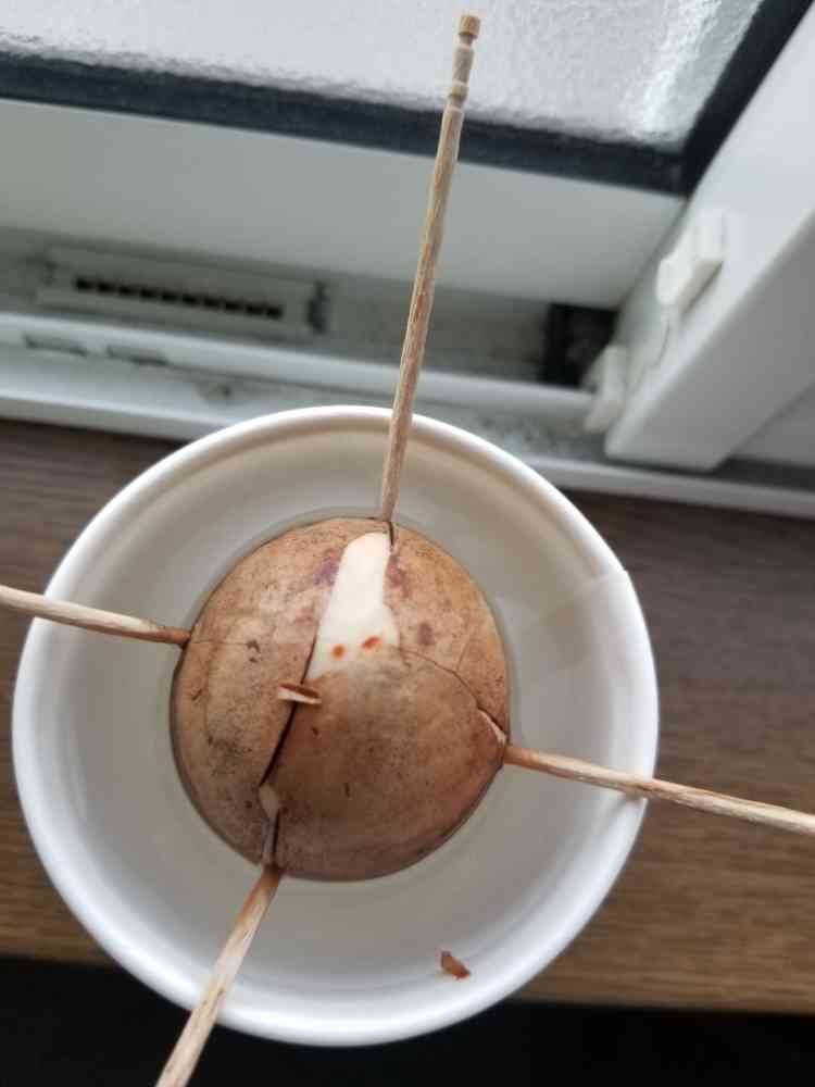 アボガドの種😅私も実験中📝✒️少し根らしきものが割れ目から出始めていました 。