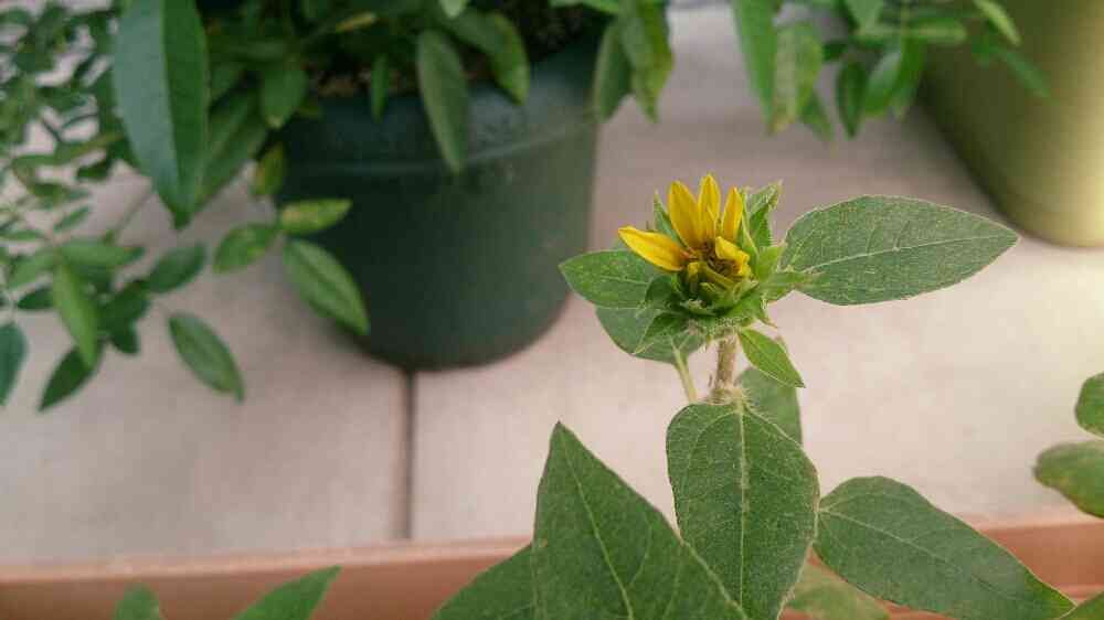 心配していたミニひまわりさんもようやく花びらがちらりと見えてきました😁