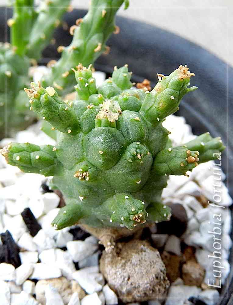 我が家のユーフォルビア・タコものの中で一番かわいいといったらコレ。まだまだ小さくて、丸い胴体から短い枝をつんつん突き出した様子がお茶目。冬の間は茶色くなってげっそり痩せこけていましたが、ここまで元気になりました。