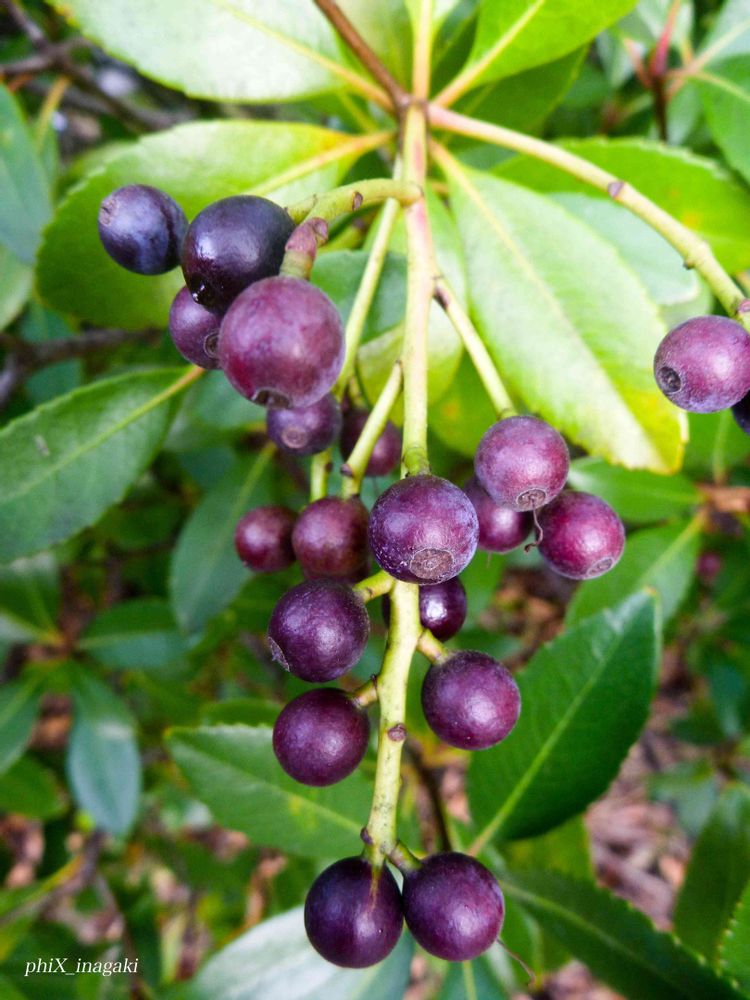 校庭を散策して,木の実の写真を沢山撮ってきました。初夏に白い花を咲かせたシャリンバイに大変綺麗な実がなっていました。種が多くて満足感は無いけど,実は食べられるらしいです。