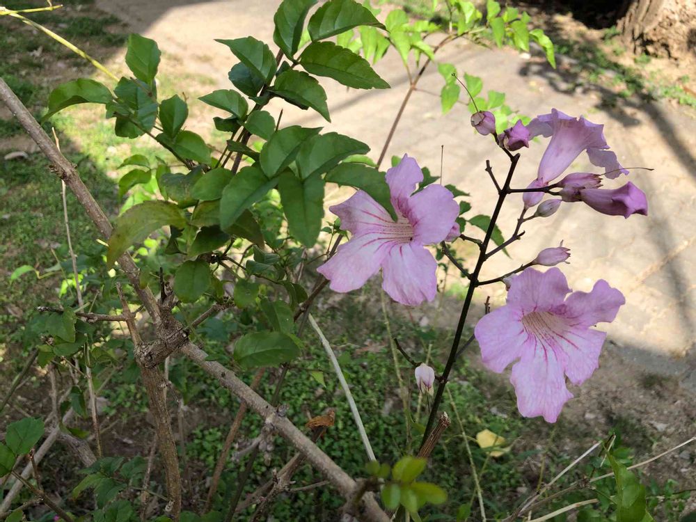 ポドラネア リカソリアナ(別名ピンクノウゼンカズラ)ですね。よく似てますがふつうのノウゼンカズラとは属が違うそうです。