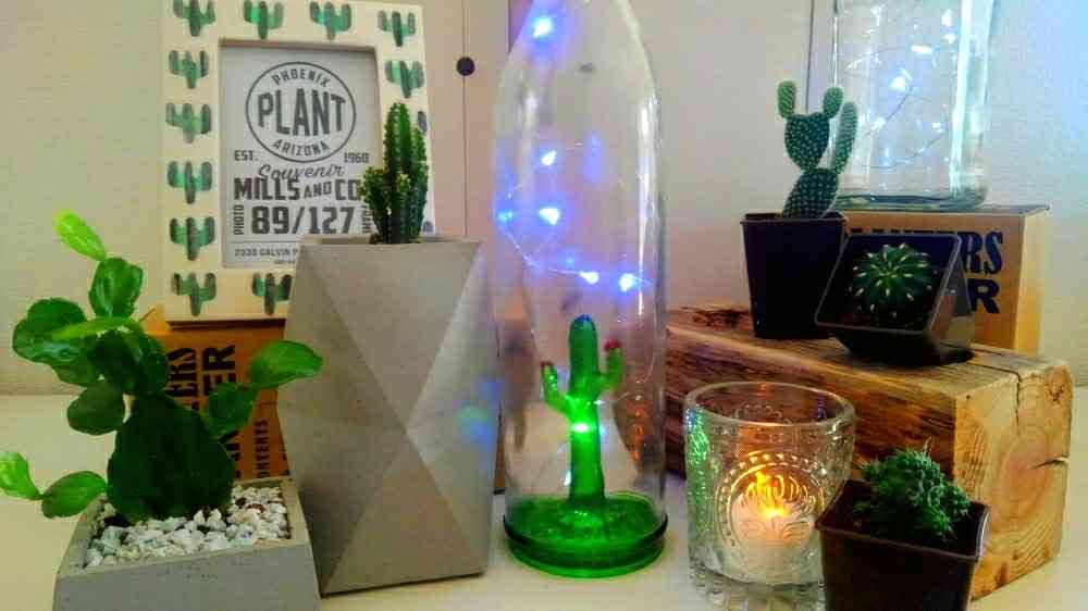 ポルフィディオ🌵というサボテンが入ったお酒の瓶をこみんぽさんに教えてもらって、中身は飲んで照明にしました❗