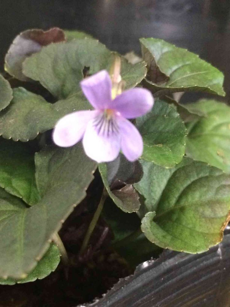 黒葉すみれ、春と秋の2期咲です。小さな薄紫色の花と葉の色が魅力的です。