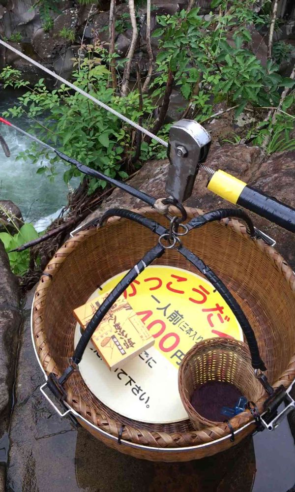 厳美渓(げんびけい)名物「空飛ぶだんご」