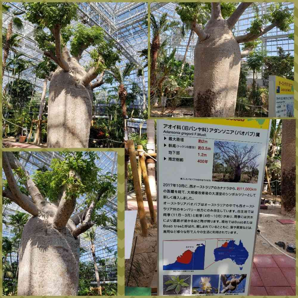 広島市植物公園へ来たバオバブは、400年だそうです。実はあります。見ましたよ。その実で、原住民が芸術品を作って、生計をたてているようです。😄😊