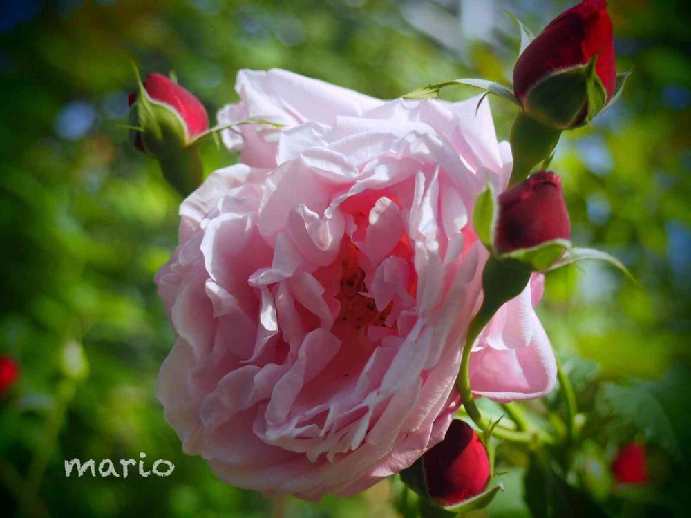 いちごのような蕾を見て、シャンテロゼミサトかと思ったら、サント・ノーレという品種でした♡