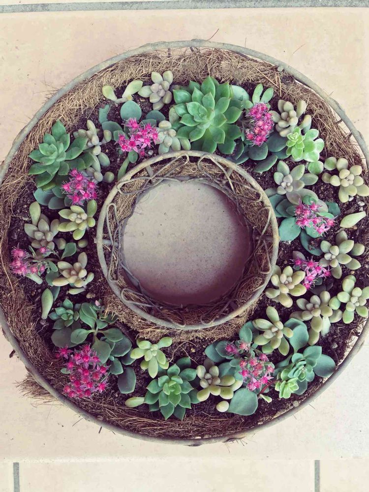 ミセバヤのリース、なんとなく落ち着いてきたのでまた成長した姿を投稿しますね🎵