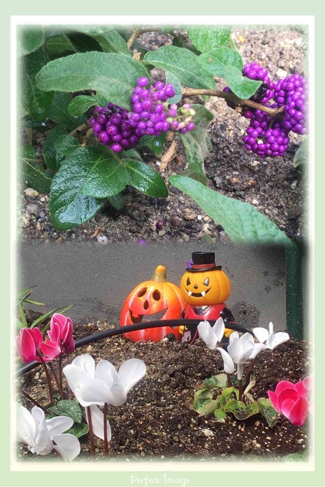 最近 母が気に入って植えたムラサキシキブと 我が家のこじんまりとしたハロウィン飾りです🎃