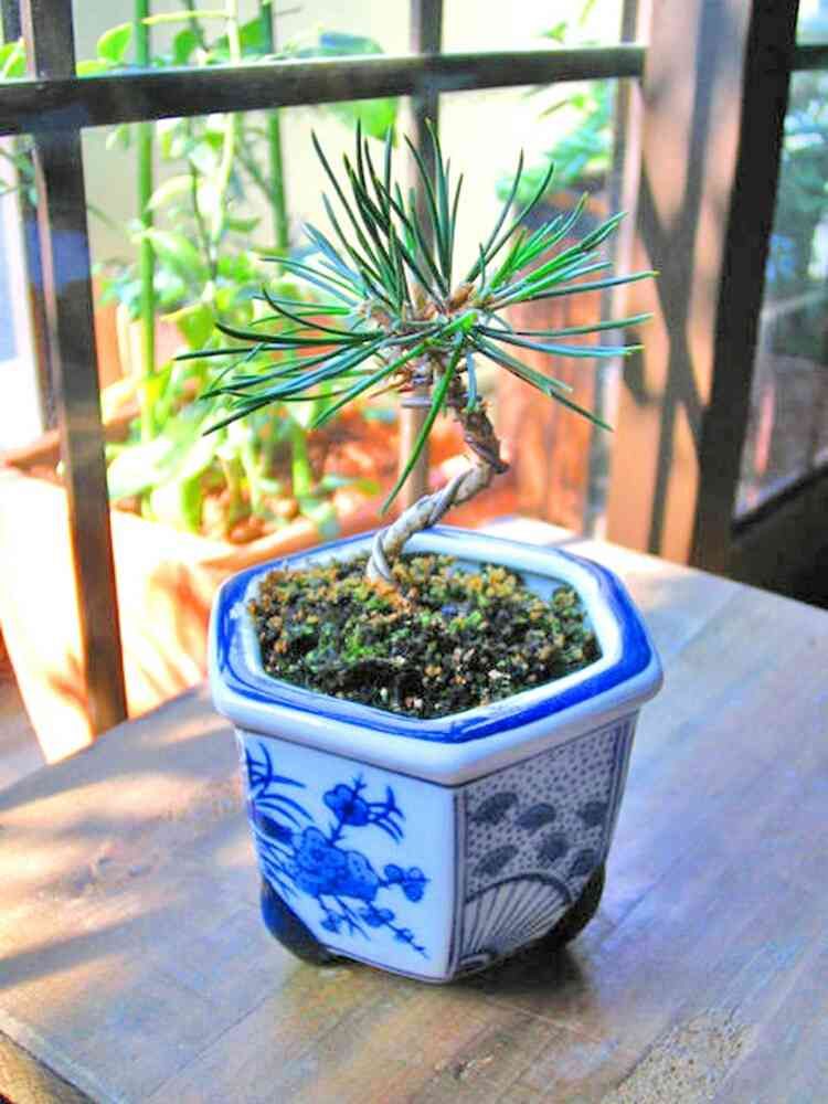 100均の鉢と黒松のミニ盆栽。