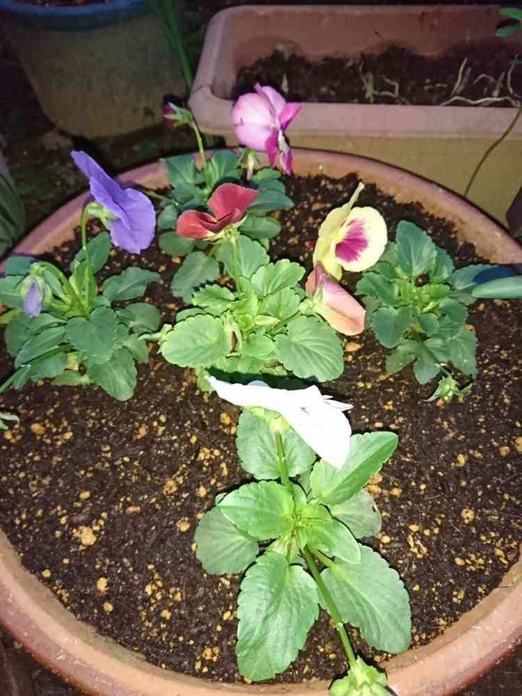 こんにちは🙇家の母親が移動販売の花屋の親父から買ったパンジーです、五本苗で五十円!です!安いと思いません?。