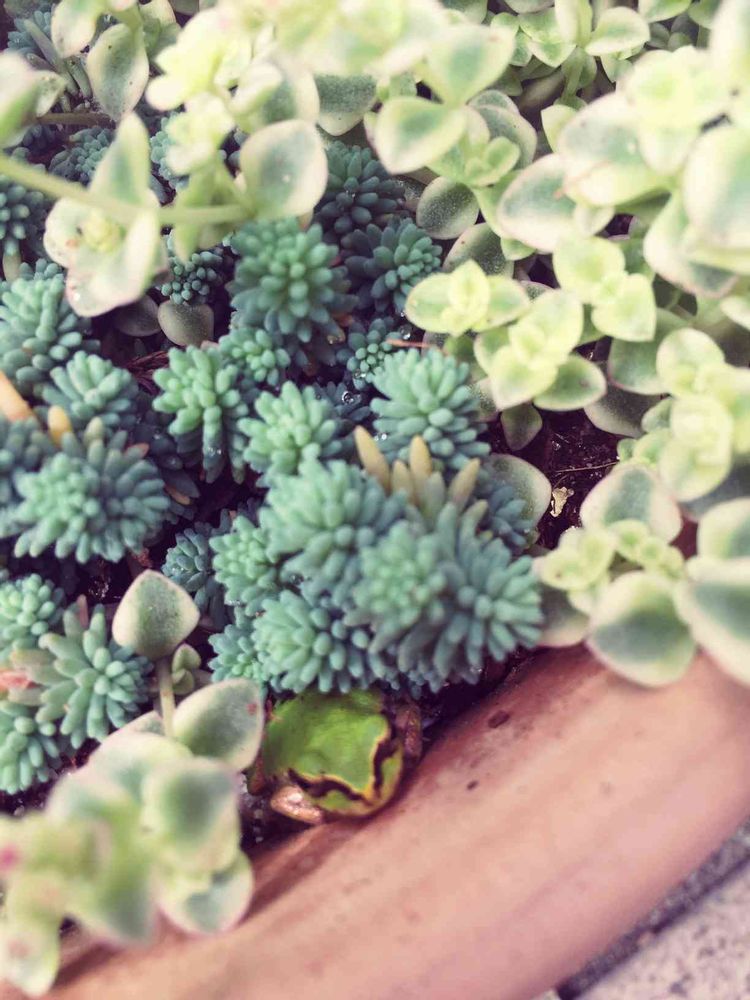 BURAさん地植えのセダム畑にいたー🐸