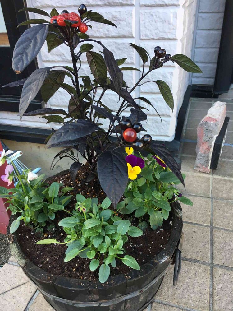 ミルクさんのビオラ,ゴシキトウガラシ パープルフラッシュ,季節の寄せ植えの投稿画像