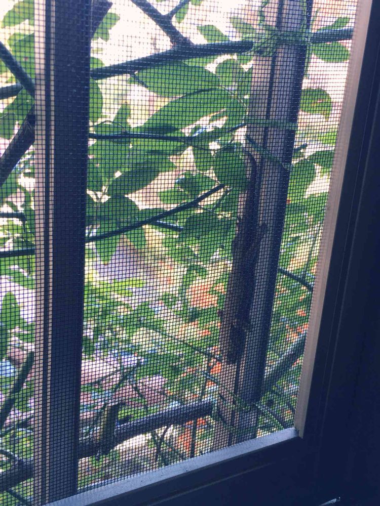 朝起きて洗面所の窓開けたら、、縦にピッタリといらっしゃいました 笑